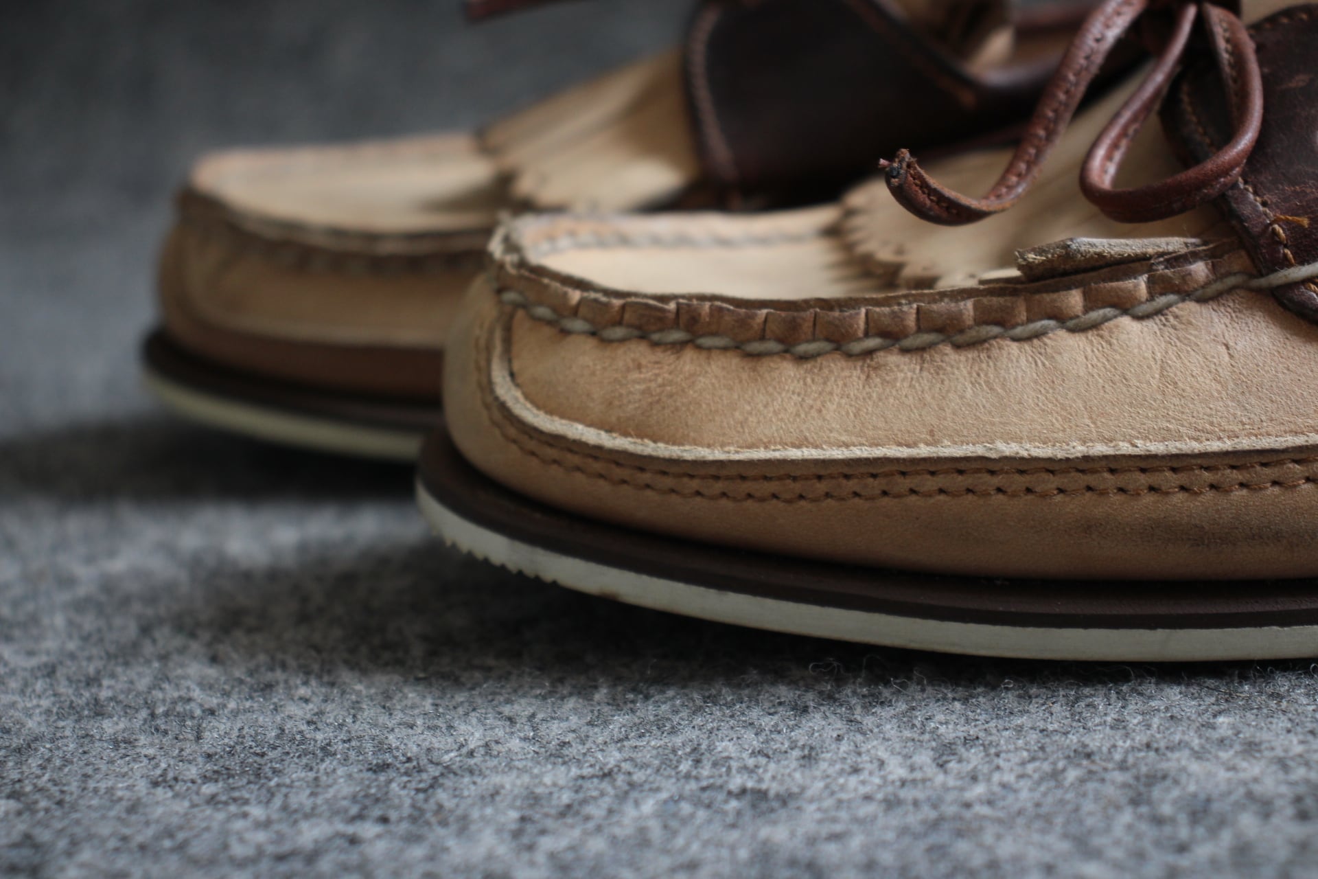 1アイレット、キルトモカシン。アウトドアテイストにキルトが付いた個性的なスタイル。