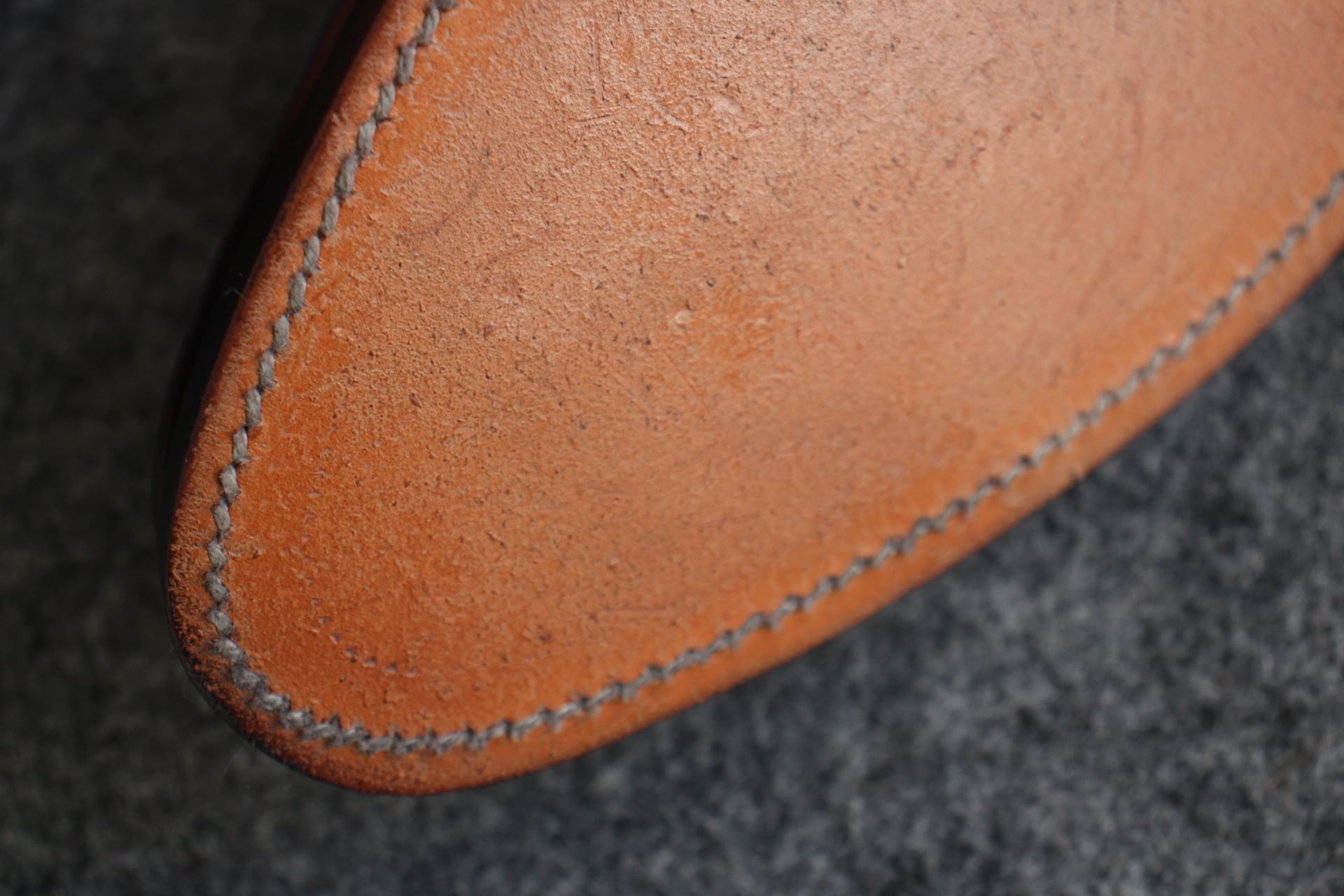 シングルソール、フラットウェルトのドレスシューズディテール。