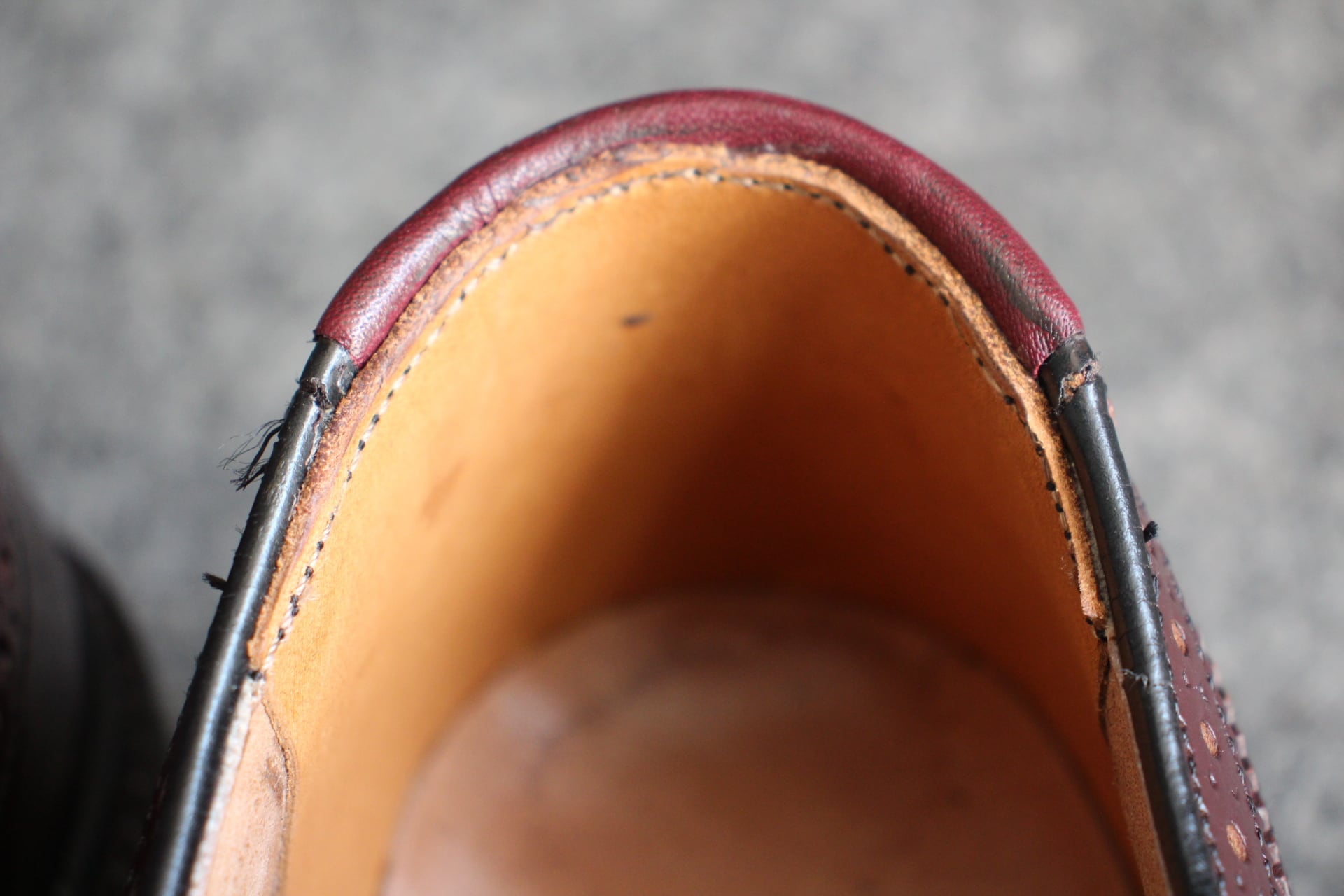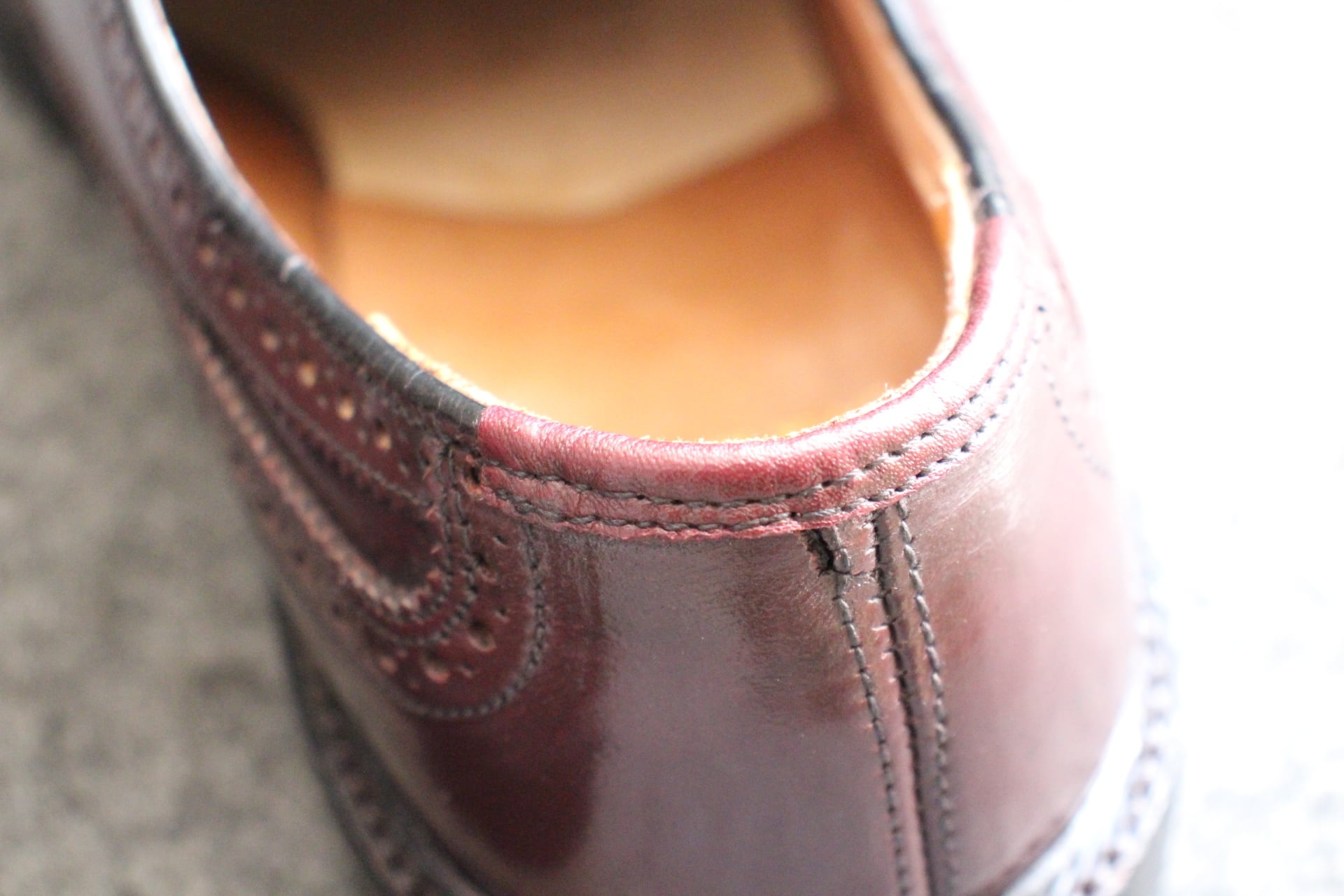履き口、カウンターライニングのお修理済みですので
