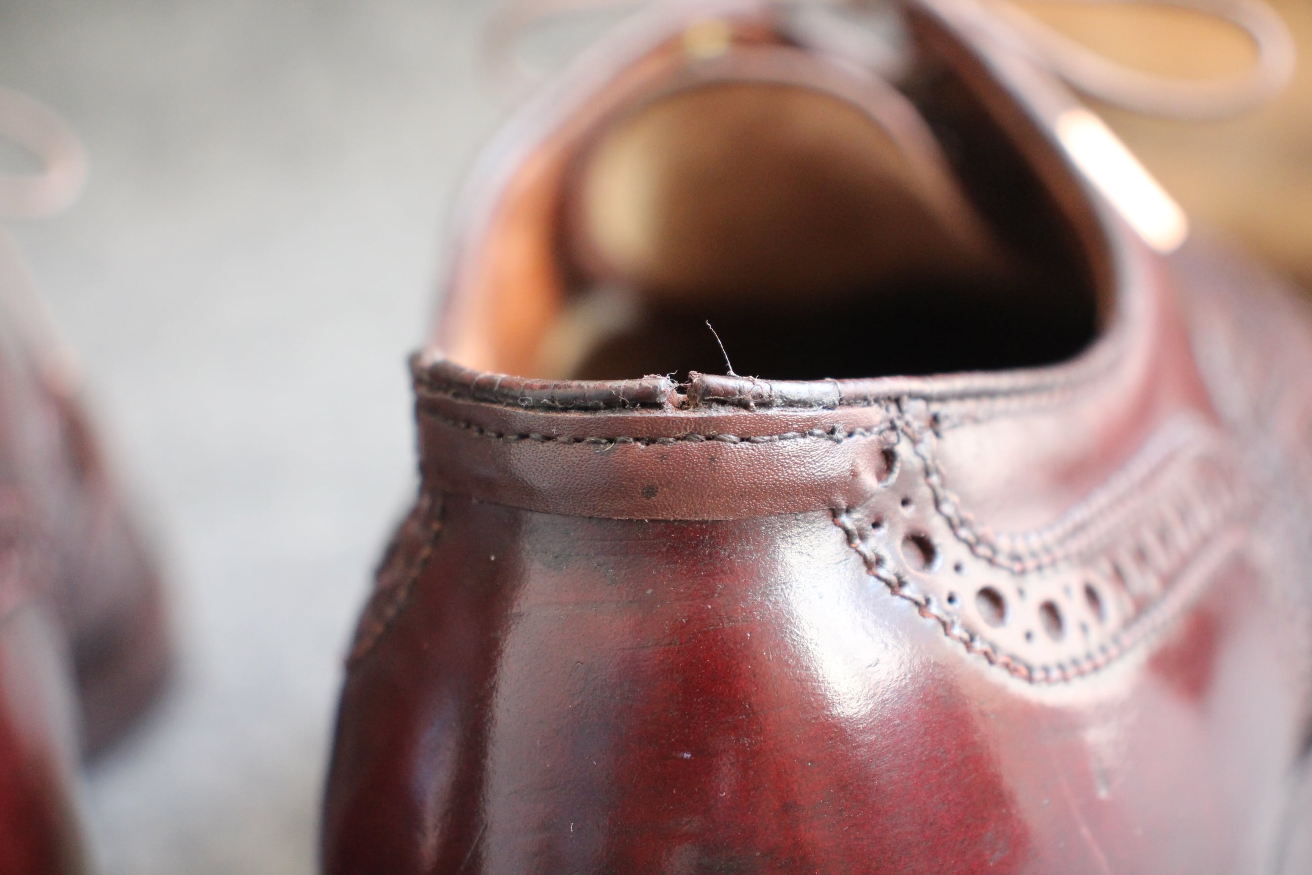 右足、履き口のセンターに、パイピングが若干切れてましたので