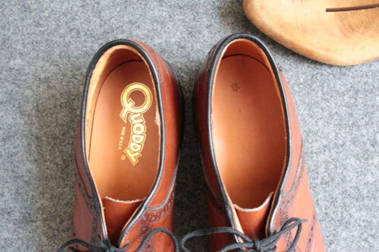 歴史あるモカシンシューズメーカー【Quoddy】 一昔前は、マニアックで通好みのメーカーでしたが 現在、本国では、スニーカーやレザー小物なども生産しており 幅広く展開中のようです。 こちらは、おおよそ80年代頃の生産、 サドルシューズです。 上級ラインのような質感ではありませんが アメリカ産らしい大衆靴のラフさが 一つ味となるでしょうか。 フォルムは綺麗で、すっきりした印象です。 気負いなく履けるペアです。 GOODYEAR WELTED製法、ライニング前方は、ファブリック。 ウェルトにもレザーを使用。 コンディションは、デッドストック(未使用)多少のスレがありますが、非常に綺麗な状態です。