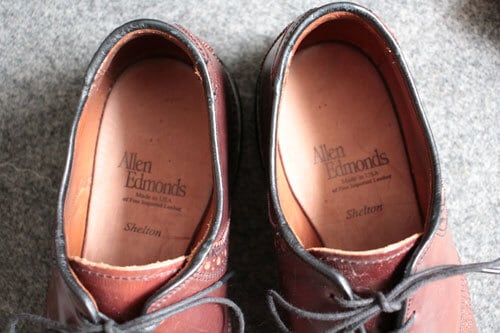 1922年ウィスコンシン州で創業したAllen Edmonds。100周年の歴史を誇り 現在もなお、MADE IN USAでリリースしている。日本には入ってきてはないのですが、 幅広いサイズ展開は、このメーカーの魅力の一つともいえると思います。 こちらは、Sheltonとネーミングされたサドルシューズ。現在は、生産中止(ディスコン)になってしまったモデルです。 アッパーは、コードバン#8(Horween)エイジングが非常に楽しみ。 ソール(コバ)も、丸く仕上げており、アメリカンサドルのディテールです。 飽きの来ないタイムレスなルックス。 そして、通好みな一足かと思います。 GOODYEAR WLTED製法、ライニングもフルレザー。ウェルト、インソールにもレザーを使用。 コンディションは、未使用品、デッドストックですが、多少のスレなどがありますが、予めご了承ください。