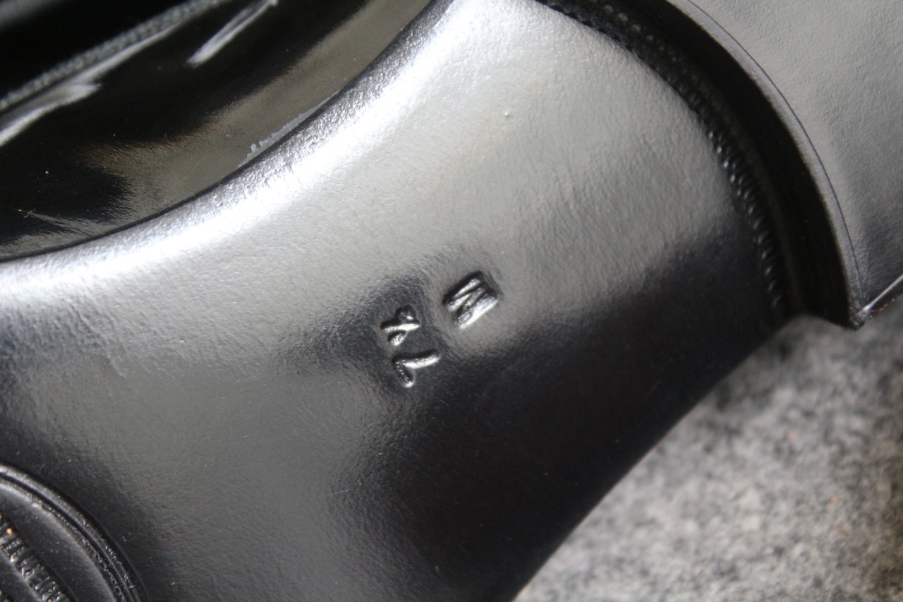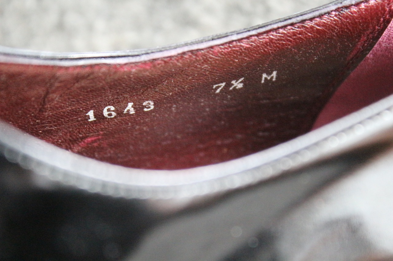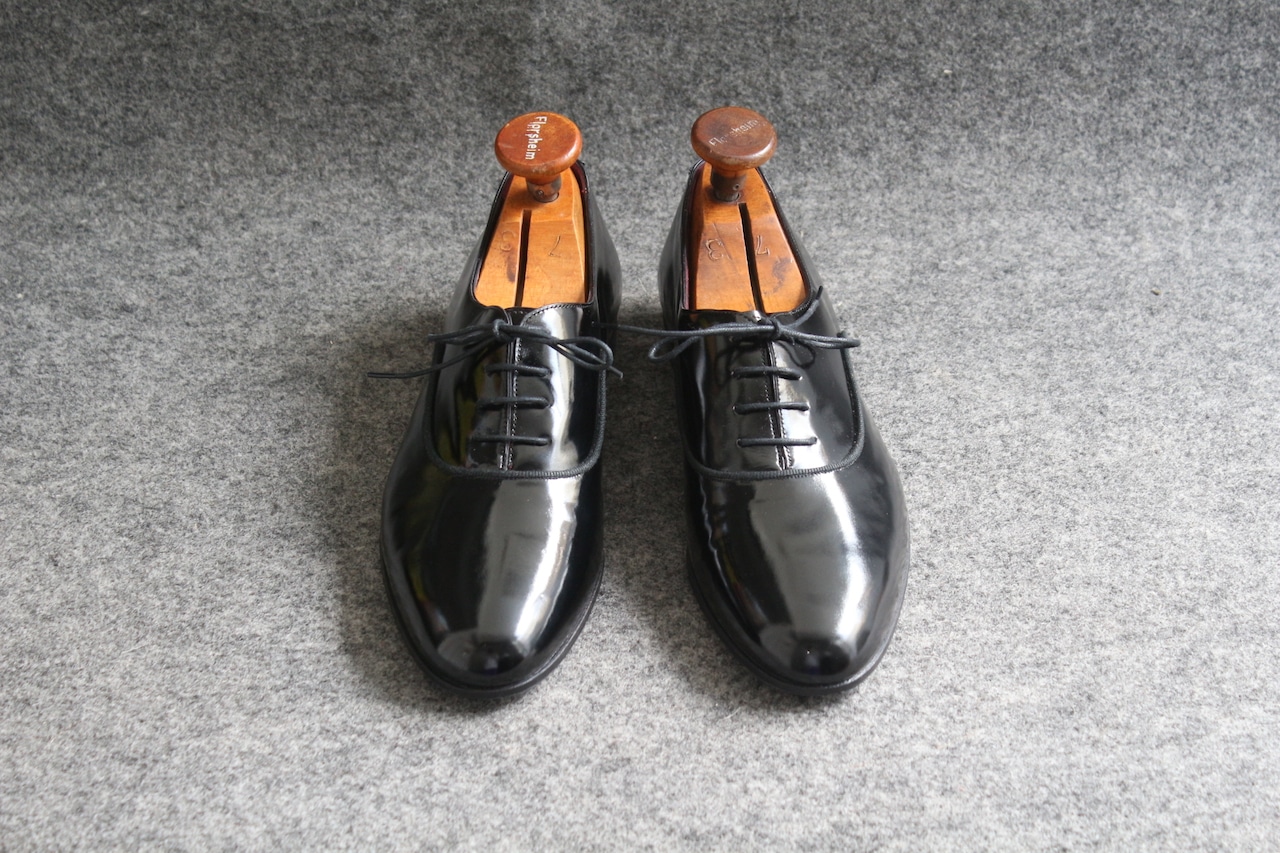 古い歴史のある靴メーカーでしたが、早くからブランドとして歩み始めており、 特に、80~90年代頃は生産数が多く、日本での販売もあったので知名度も高い。 それ以前のヴィンテージシューズも、市場に出てきますが、質の高いものが多いので 人気のブランドと言えます。 こちらは、おおよそ80~90年代頃、生産はイタリア。 スタイルは、タキシードシューズ。 切り替えしには、パイピングが施されております。 このタイプを履くシチュエーションは、少ない印象ですが そのルックスは、非常に可愛らしい印象ですので これからのちょっとしたパーティ系、二次会などで 使うためにも持っていてください。 セメンテッド製法(接着)、ライニングはフルレザー。 コンディションは、デッドストック、未使用ですが、多少のスレなどはありますが、 予めご了承ください。