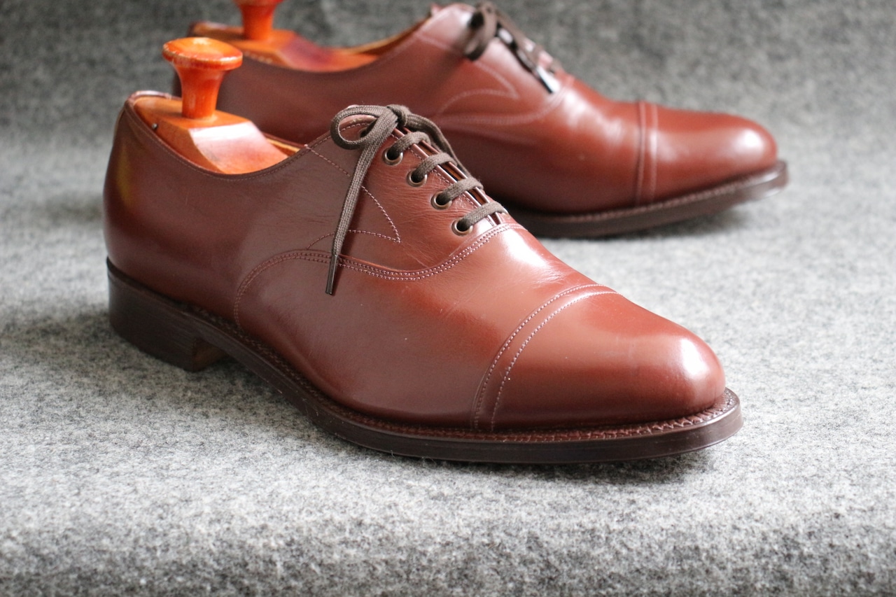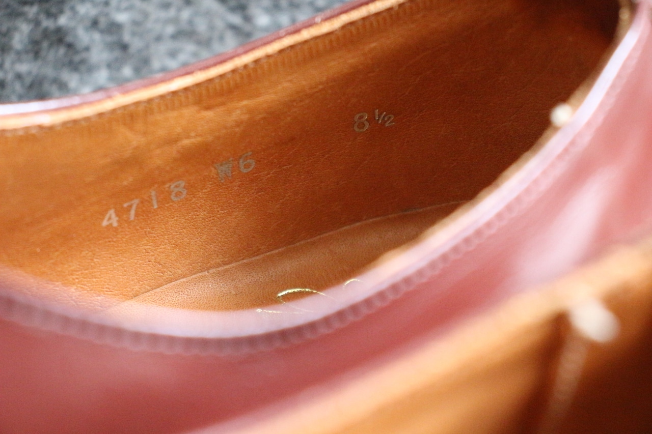 英国はノーザンプトンのSANDERSに買収された【REGENT】 現在は、乗馬系のブーツなどのブラウンドとして、リリースされているようです。 こちらは、その買収以前の生産かと思われますが【SUPER REGENT】 60~70年の生産でしょうか。オールド感のあるアッパーの色味。 英国らしいさのある全体的なフォルム、ルックスですが、木型は特徴があったような印象です。 羽根下のステッチのデザインも◎ アイレットもハトメ仕様ですので、カジュアル感もたかく ヴィンテージやクラシックな装いに合う印象です。 GOODYEAR WELTED製法、ライニング前方は、ファブリック、インソール、、ウェルトにもレザーを使用。 コンディションは、試着履き程度、多少のスレ、色落ちなど古い時代の生産ですので、ご理解ください。