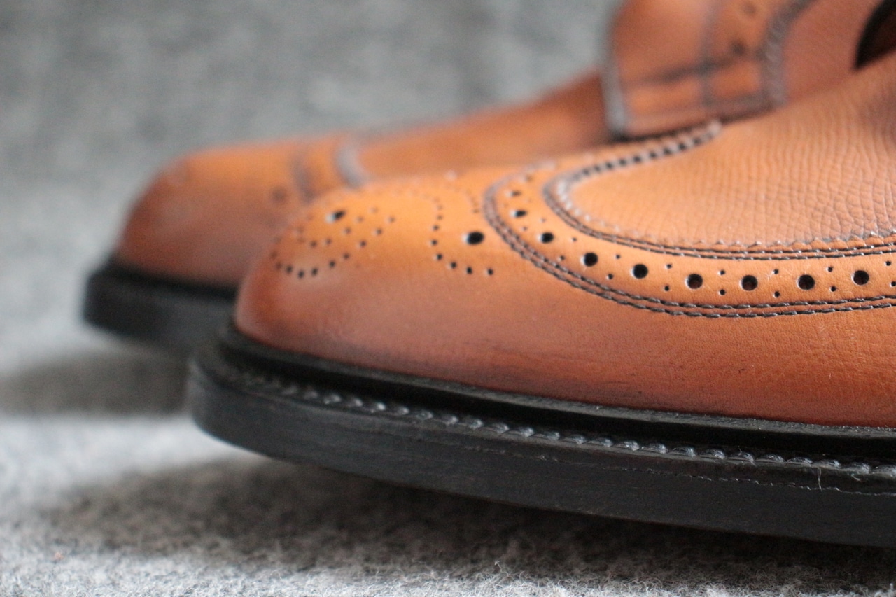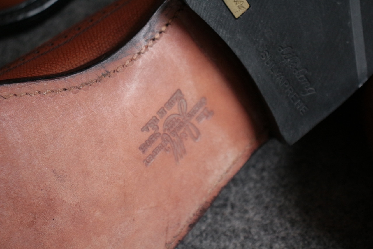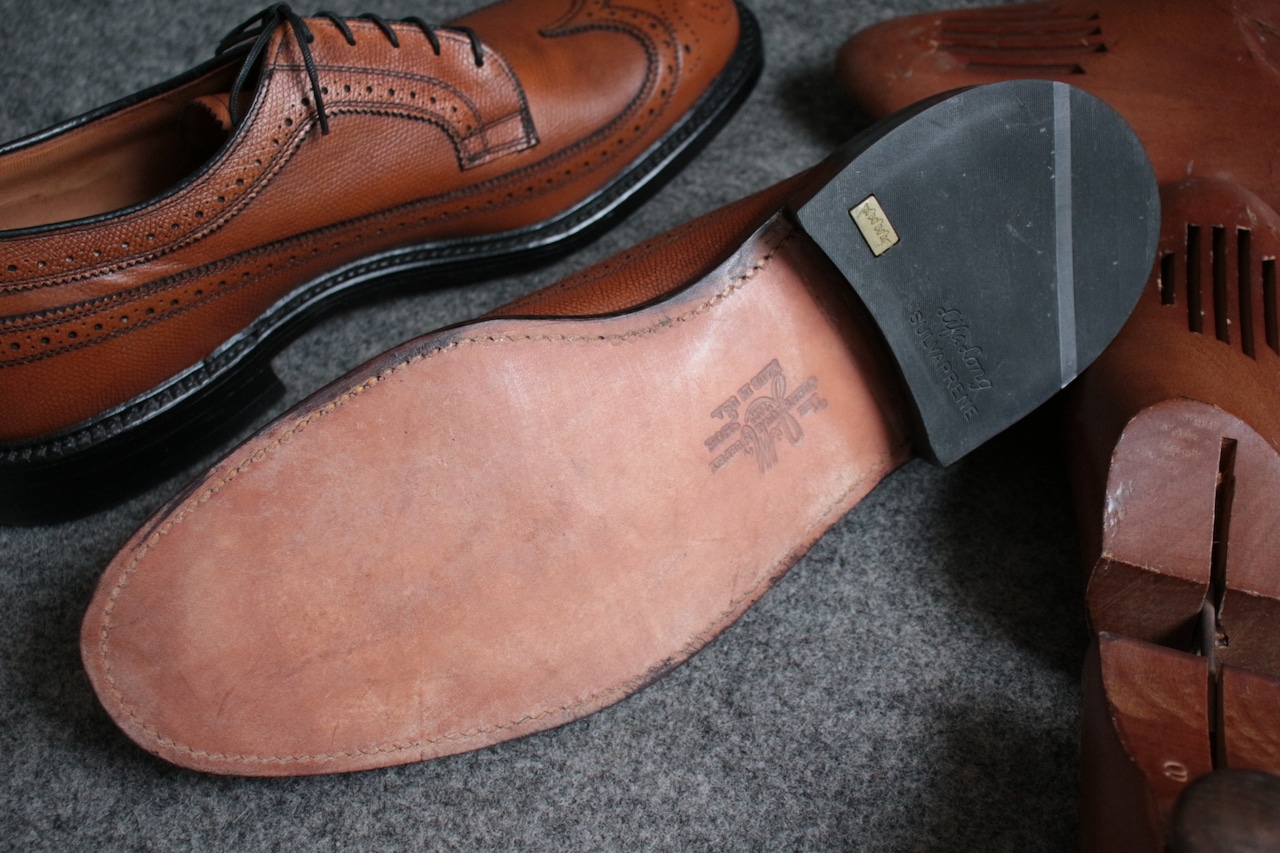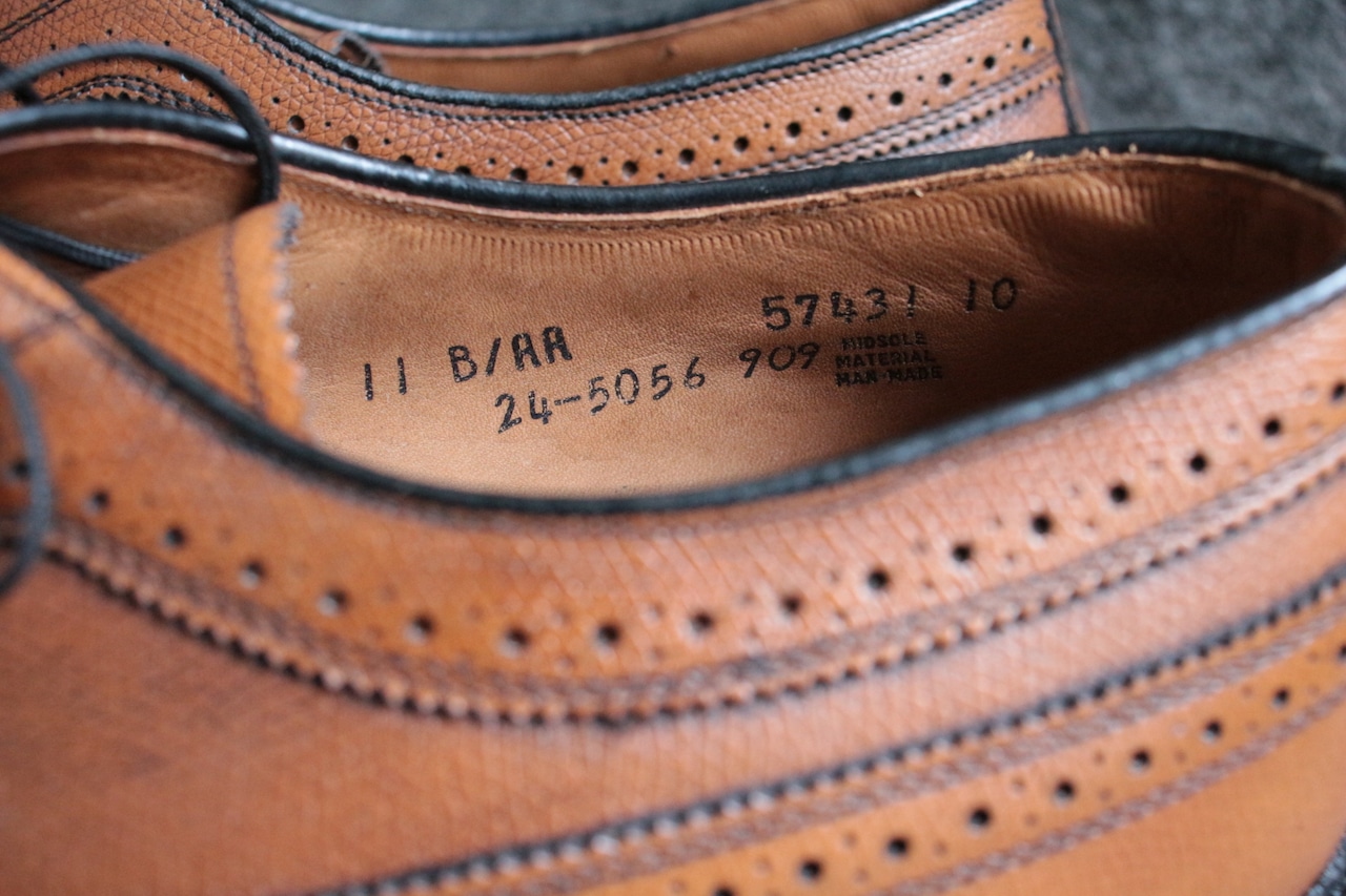 100年以上の歴史を誇る米国老舗ドレスシューメーカー【Johnston &Murphy】 歴代大統領も愛用していたという逸話もあります。 現在もワールドワイドに展開中の大手アパレルメーカー。 過去には、古靴好きを唸らせる名品が多数存在し、 また【ARISTOCRAFT】の上級ラインをはじめ、 多くのラインがあった時代もあります。 こちらは、おおよそ80年代頃の生産かと思われます、当時の上級ライン【ARISTOCRAFT】ライン。 5アイレット、ロングウィング。J&Mのロングウィングは、フラットウェルトがい多く ストームウェルト物は少ない印象です。 こちらは、ストームウェルトが使用されておりますので、定番のアメリカンロングウィング。 質感も良く、安心感のあるARISTOCRAFT。 GOODYEAR WELTED製法、ライニングもフルレザー。インソール、ウェルトにはレザーを使用。 コンディションは、箱なしですが、デッドストック、未使用品です。多少のスレはありますが、予めご了承ください。