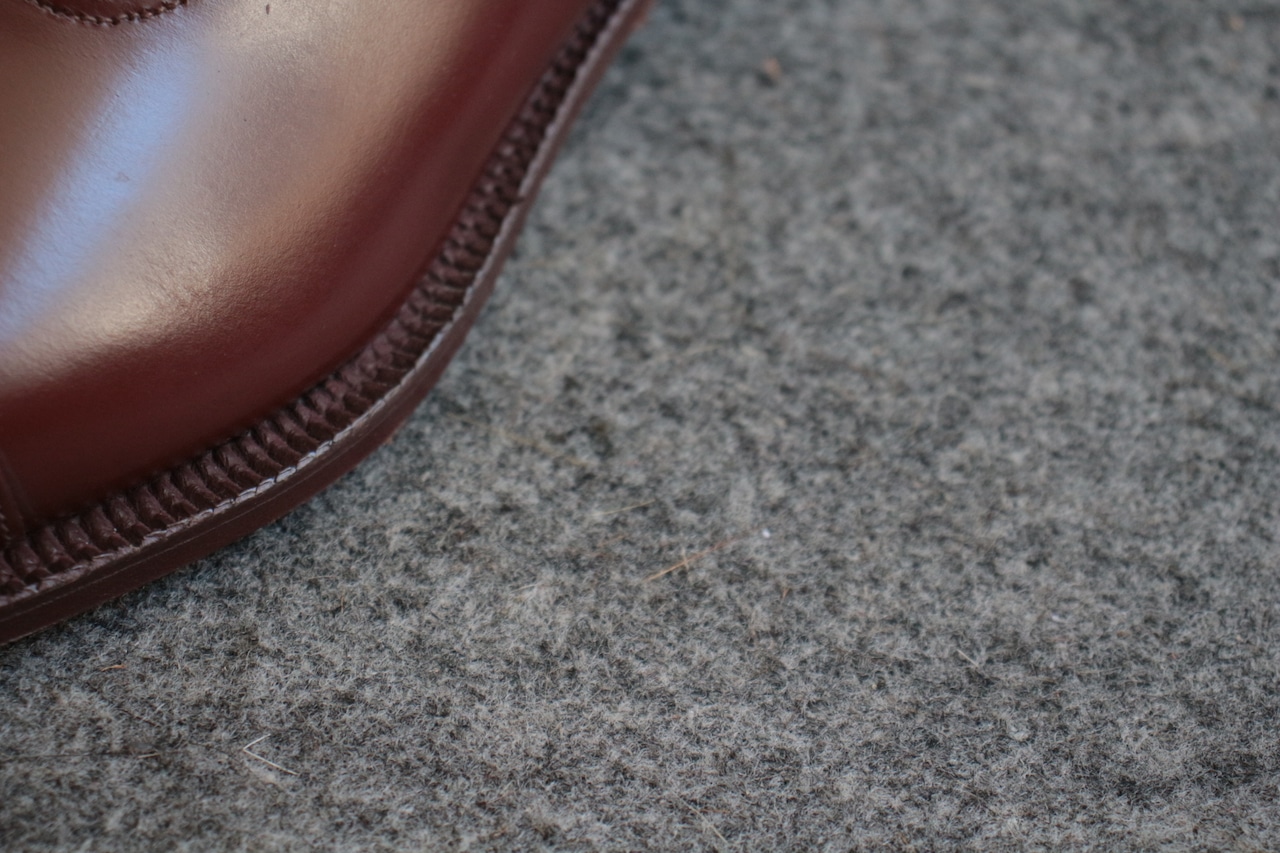 :1875年 Irthlingborough(NORTHAMPTONSHIRE)で創業した John Shortland Ltd。 WEARRAとうブランドの靴を古くから生産しており。 その後、DAVID SCOTT名義の靴を生産して模様。 大衆向けクラスのイメージですが、 ベーシックな英国靴です。 アッパーの色目は、古い時代に多くあったような独特な色目。 5アイレットで、英国靴らしく色気なく優等生な雰囲気。 ややミリタリー的な要素も入っているのでしょうか。 カジュアルで使いやすいタイプで、重宝するペアかと思います。 Goodyear Welted製法、ライニングは、ファブリック。ウェルト、インソールにもレザーを使用。 コンディションは、未使用品、デッドストックです。多少のスレなどはありますが、予めご了承ください。