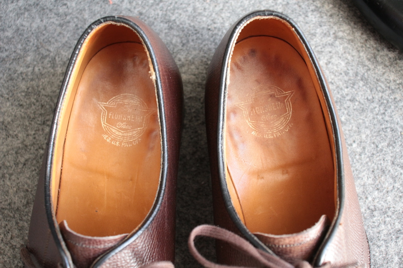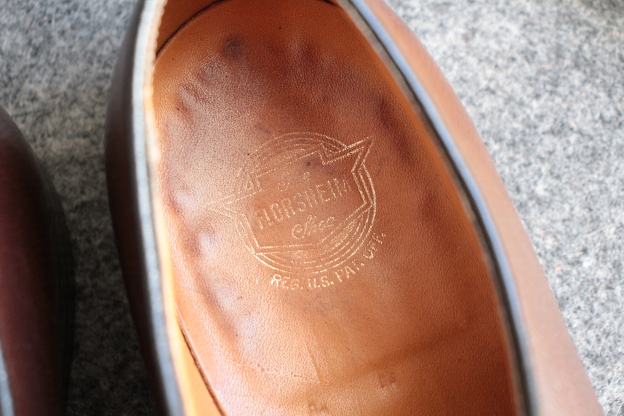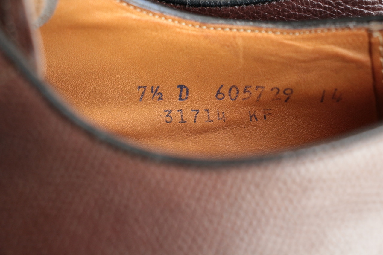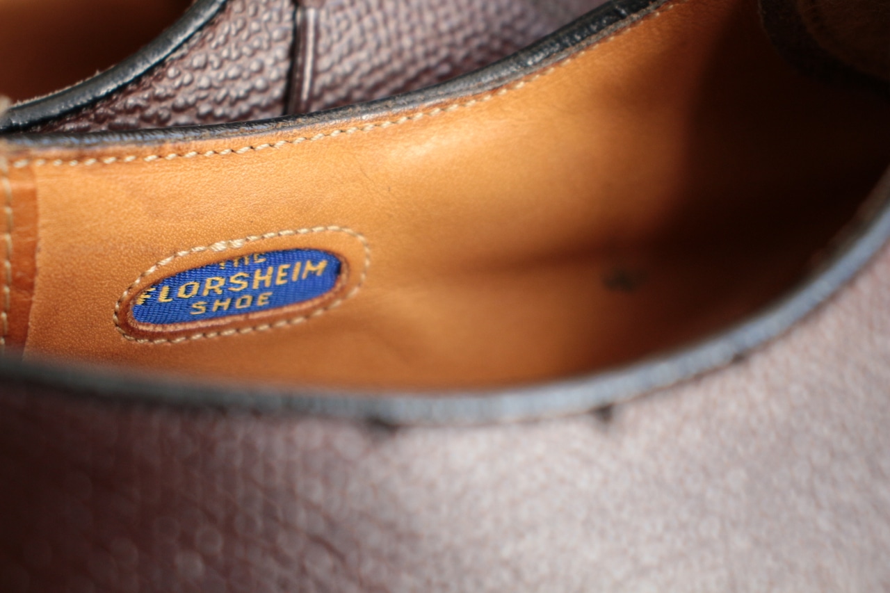 1800年代創業で長い歴史を誇る米国老舗シューメーカー【FLORSHEIM】 現在も海外生産を中心にし、 ワールドワイドに展開する大手シューメーカー。 過去には、【IMPERIAL シリーズ】を初め、多くの名作をリリースしていたメーカーで、 アメリカ古靴愛好家にとっては、欠かせないメーカーです。 こちらは、おおよそ70年代頃の生産、LaurelとネーミングされたUチップ。 古くから生産しているモデルで、Kenmoor同様、このメーカーを代表するアメリカンUチップ。 やや濃いめのブラウン系で、羽根のVフロント系デザイン。オンオフに対応するヴィンテージシューズ。 Goodyear Welted製法、ライニング前方は、ファブリック。インソール、ウェルトにはレザーを使用。 全体的に多少の使用感はありますが、特に目立ったキズなどはありません。 アウトソール、ヒールの減りも多少感じますが、 これからも十分履いていただけます。