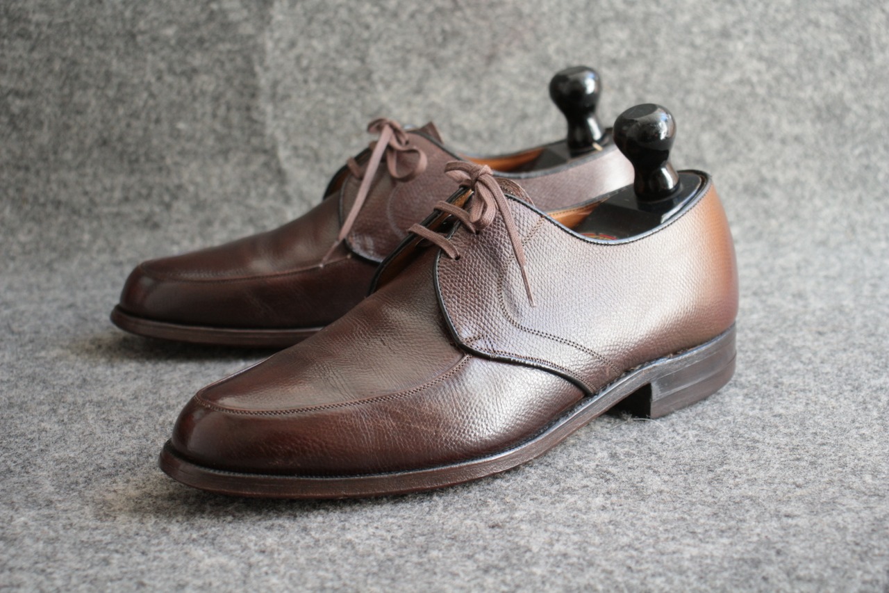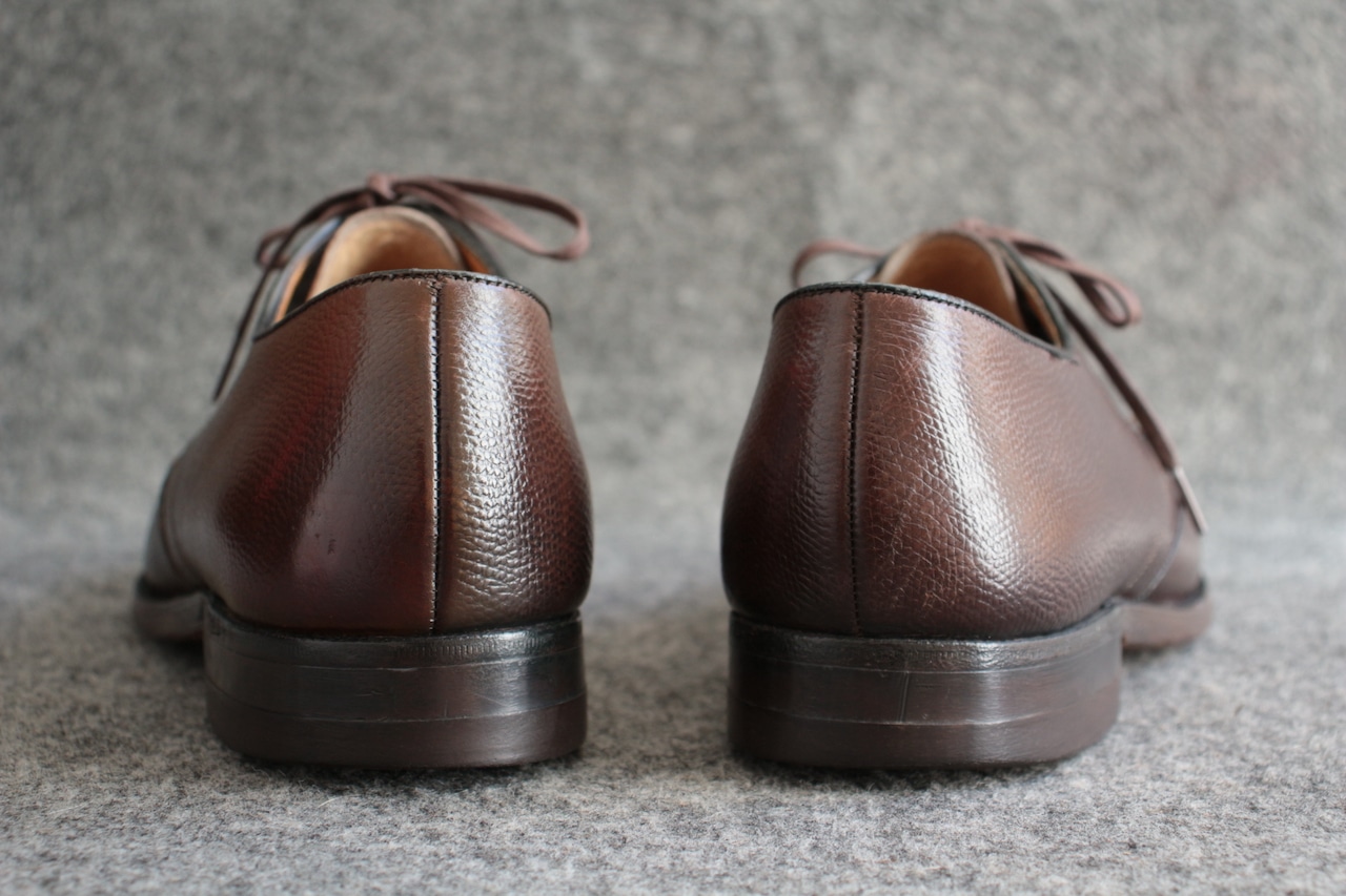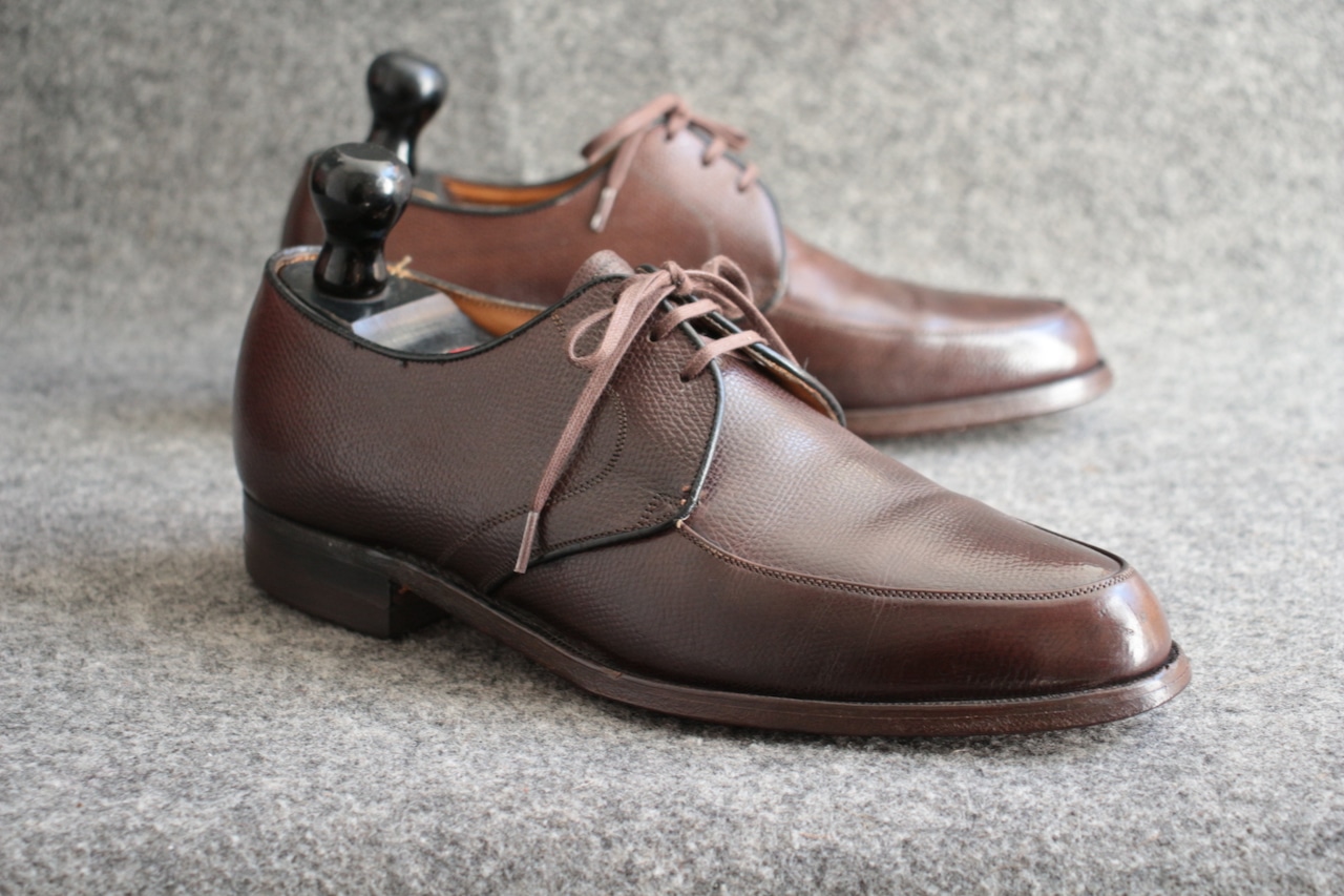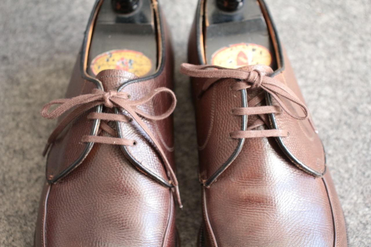 1800年代創業で長い歴史を誇る米国老舗シューメーカー【FLORSHEIM】 現在も海外生産を中心にし、 ワールドワイドに展開する大手シューメーカー。 過去には、【IMPERIAL シリーズ】を初め、多くの名作をリリースしていたメーカーで、 アメリカ古靴愛好家にとっては、欠かせないメーカーです。 こちらは、おおよそ70年代頃の生産、LaurelとネーミングされたUチップ。 古くから生産しているモデルで、Kenmoor同様、このメーカーを代表するアメリカンUチップ。 やや濃いめのブラウン系で、羽根のVフロント系デザイン。オンオフに対応するヴィンテージシューズ。 Goodyear Welted製法、ライニング前方は、ファブリック。インソール、ウェルトにはレザーを使用。 全体的に多少の使用感はありますが、特に目立ったキズなどはありません。 アウトソール、ヒールの減りも多少感じますが、 これからも十分履いていただけます。