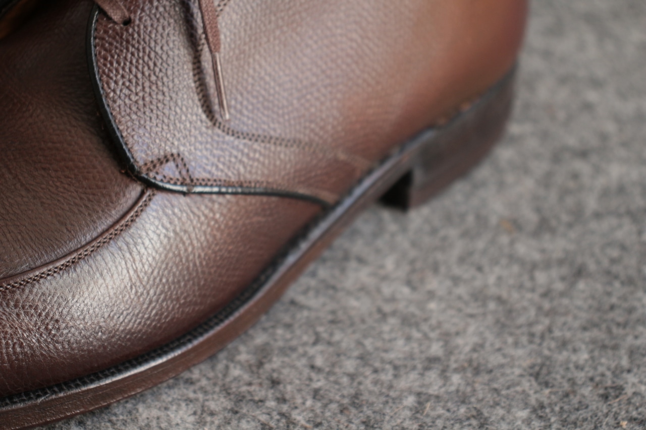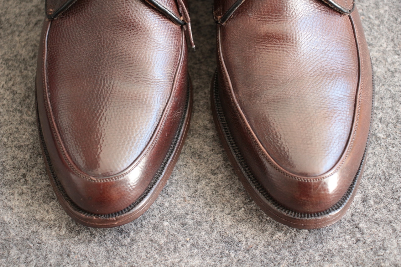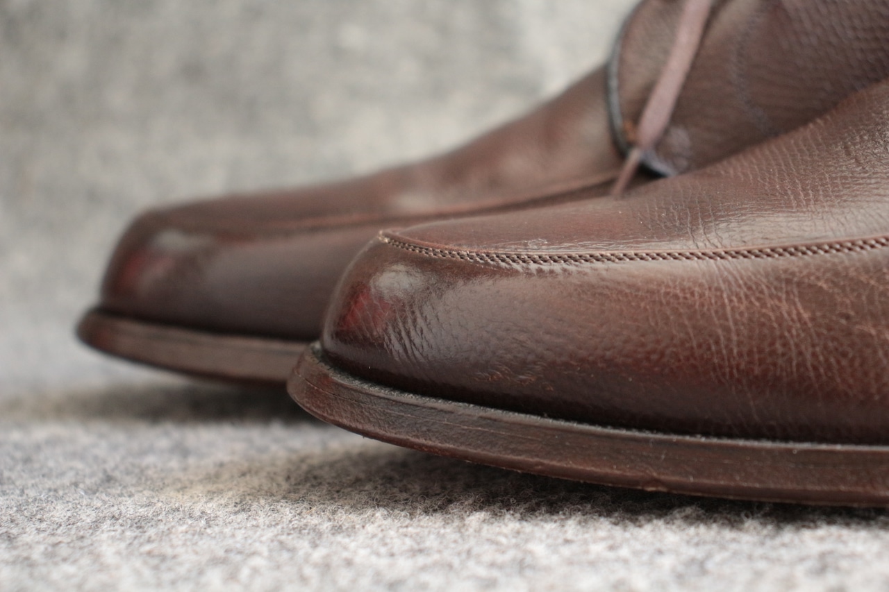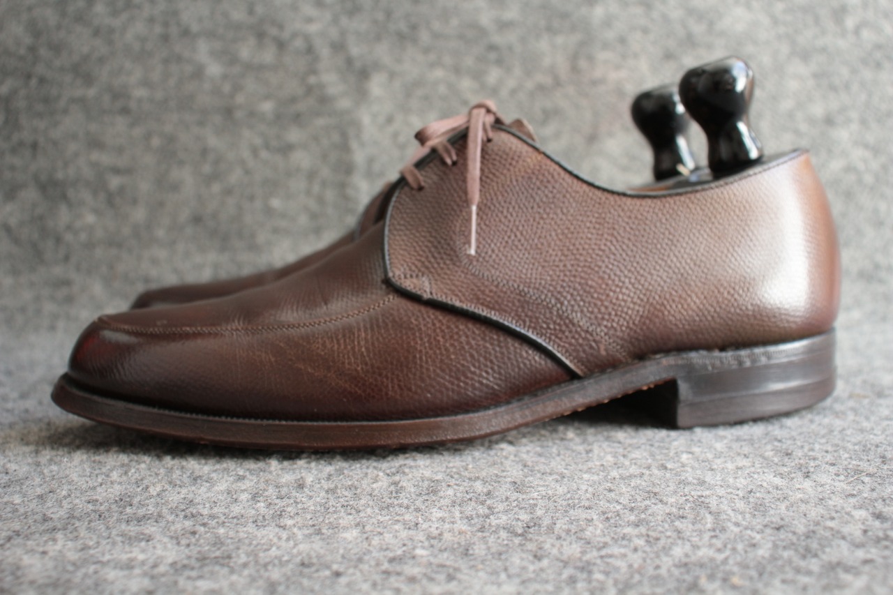 1800年代創業で長い歴史を誇る米国老舗シューメーカー【FLORSHEIM】 現在も海外生産を中心にし、 ワールドワイドに展開する大手シューメーカー。 過去には、【IMPERIAL シリーズ】を初め、多くの名作をリリースしていたメーカーで、 アメリカ古靴愛好家にとっては、欠かせないメーカーです。 こちらは、おおよそ70年代頃の生産、LaurelとネーミングされたUチップ。 古くから生産しているモデルで、Kenmoor同様、このメーカーを代表するアメリカンUチップ。 やや濃いめのブラウン系で、羽根のVフロント系デザイン。オンオフに対応するヴィンテージシューズ。 Goodyear Welted製法、ライニング前方は、ファブリック。インソール、ウェルトにはレザーを使用。 全体的に多少の使用感はありますが、特に目立ったキズなどはありません。 アウトソール、ヒールの減りも多少感じますが、 これからも十分履いていただけます。